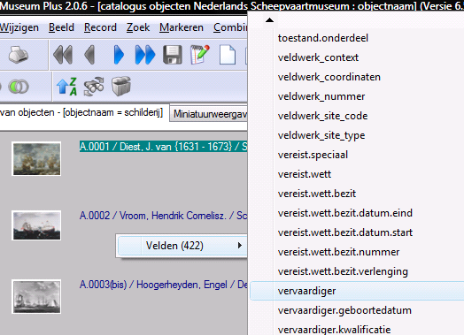 Met de nieuwe software versie kan dit sneller en makkelijker. Je kan nu door rechts te klikken in het overzichtscherm direct een veld selecteren waarop je wilt sorteren. De lijst is nogal lang, (er zijn veel velden in Adlib!) maar door de eerste letter van het veld te typen kan je snel door de lijst heen bladeren.