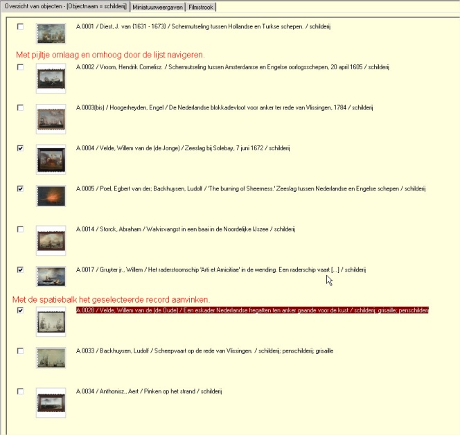 Wil je een aantal records aanvinken in je zoekresultaat? Navigeer dan met behulp van de pijltjes toetsen naar het bewuste record, en druk op de spatiebalk om het record aan of uit te vinken. Bij een grote selectie kan dit heel wat RSI gevoelig geklik schelen met de muis!