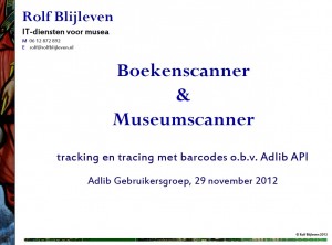 Rolf Blijleven liet op de najaarsbijeenkomst zien dat het ook anders kan. De verhuismodule van AIS heeft heel veel mogelijkheden hetgeen gepaard gaat met een behoorlijk prijskaartje. Het Legermuseum heeft echter slechts de basisfuncties nodig (standplaatswijzigingen). Rolf ging aan de slag met de adlib API en creëerde een boeken – en museumscanner.